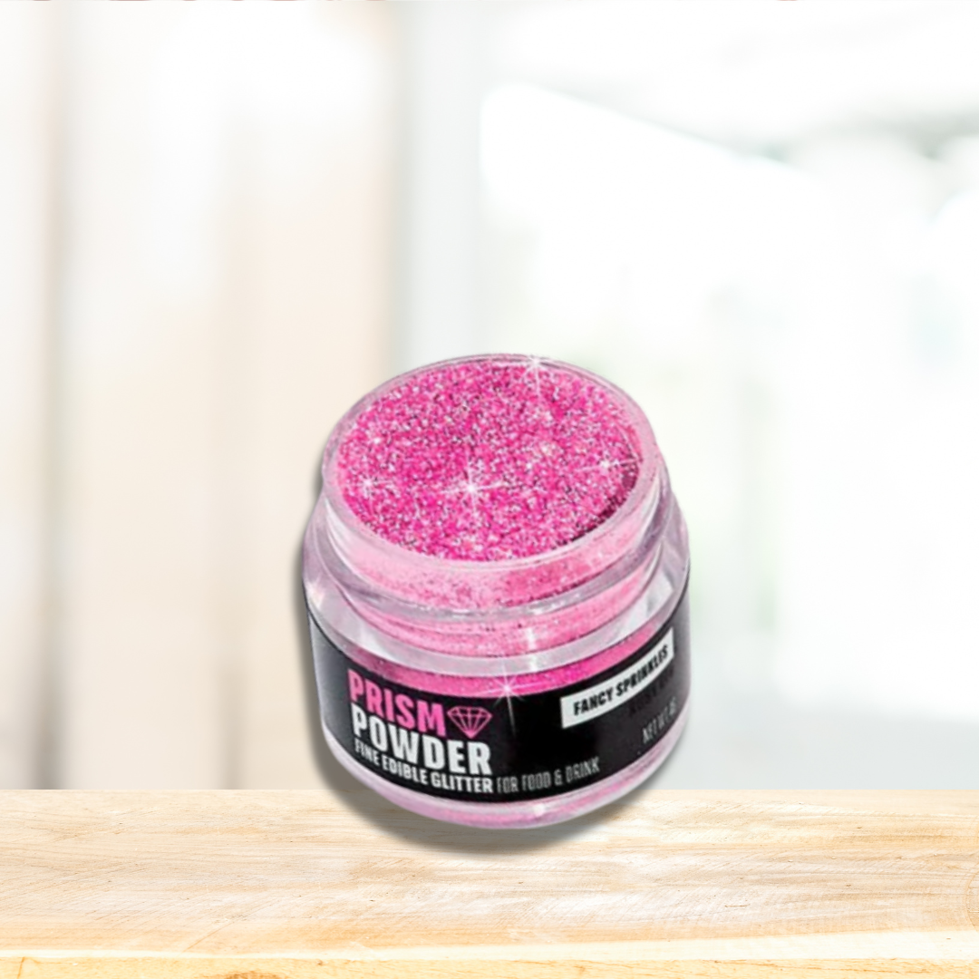 Tourmaline Pink is a fine edible glitter powder that shines like a pink tourmaline in liquid.